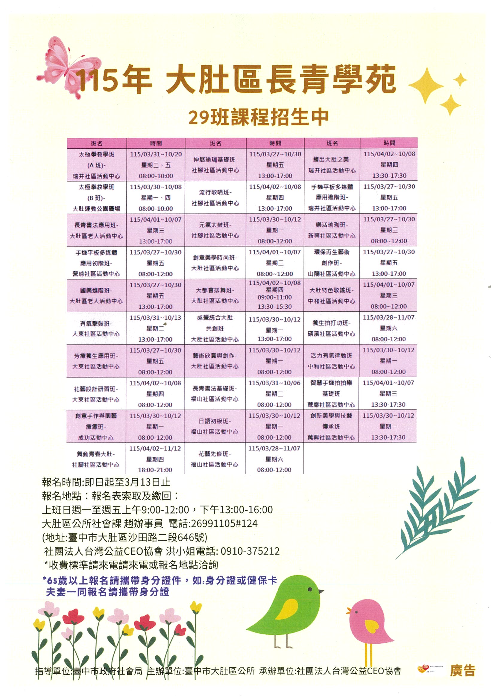 ✔ 65歲以上報名請攜帶身分證(或健保卡)