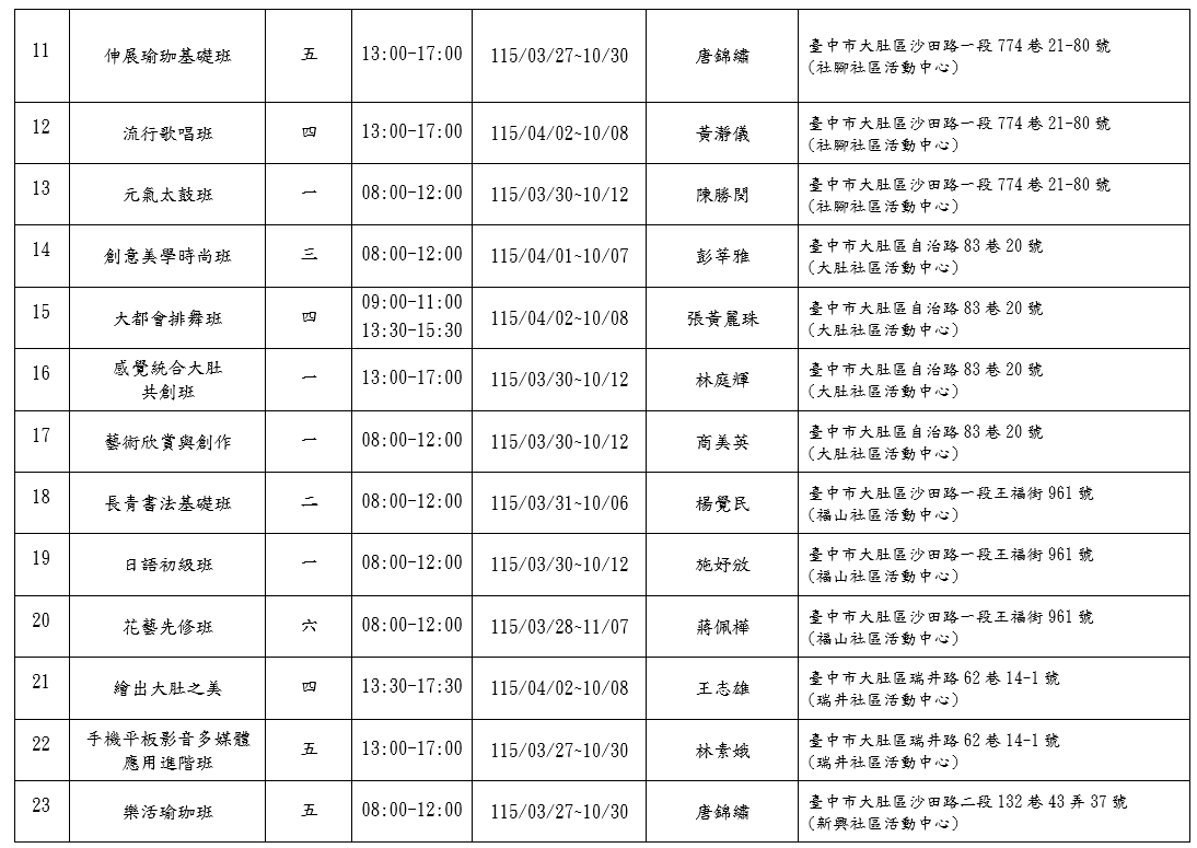 大肚區長青學苑為您準備多元精彩課程,邀請大家一起樂活學習、精彩成長!