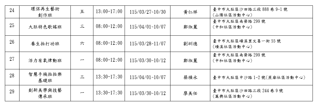 ✨ 29班豐富課程等您一起來學習✨